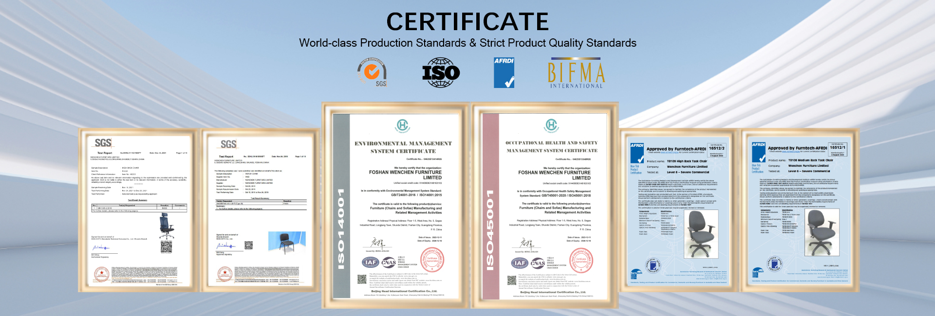 19 years professional manufacturer which focusing on exporting office seatings. The management system of Wenchen Furniture is certified for ISO9001 / IS14001 / ISO45001. We are also a member of SEDEX.